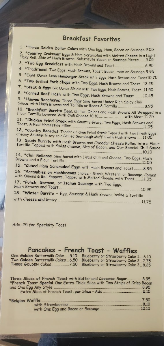 Choice - steak, western, or sausage. Comes with onions & bell peppers, topped with melted cheese, with toast